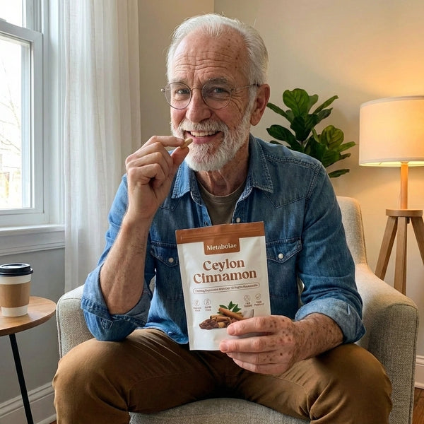 Metabolae uses authentic Ceylon cinnamon, concentrated 12-to-1 and infused with MCT oil to support healthy blood sugar, energy, and metabolic balance, backed by scientific research and designed for daily use.